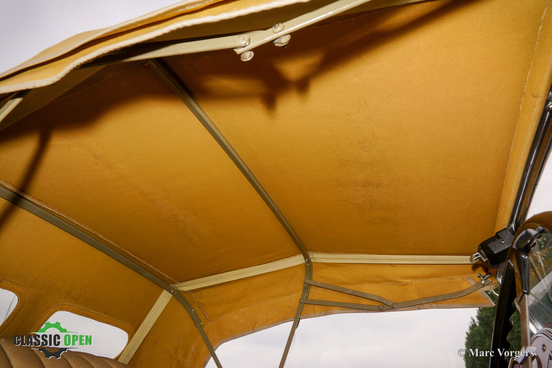 Verdeck, Persenning und Seitenfenster Rahmen in Beige.
