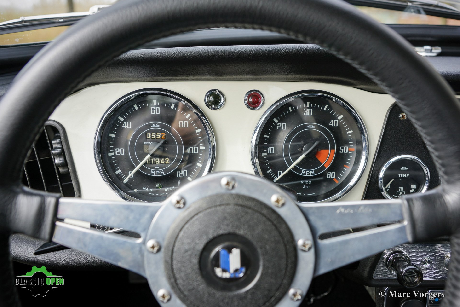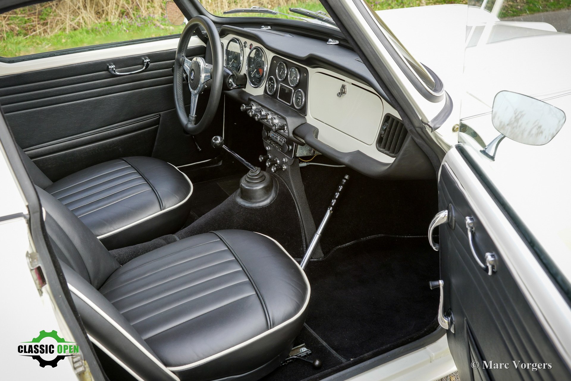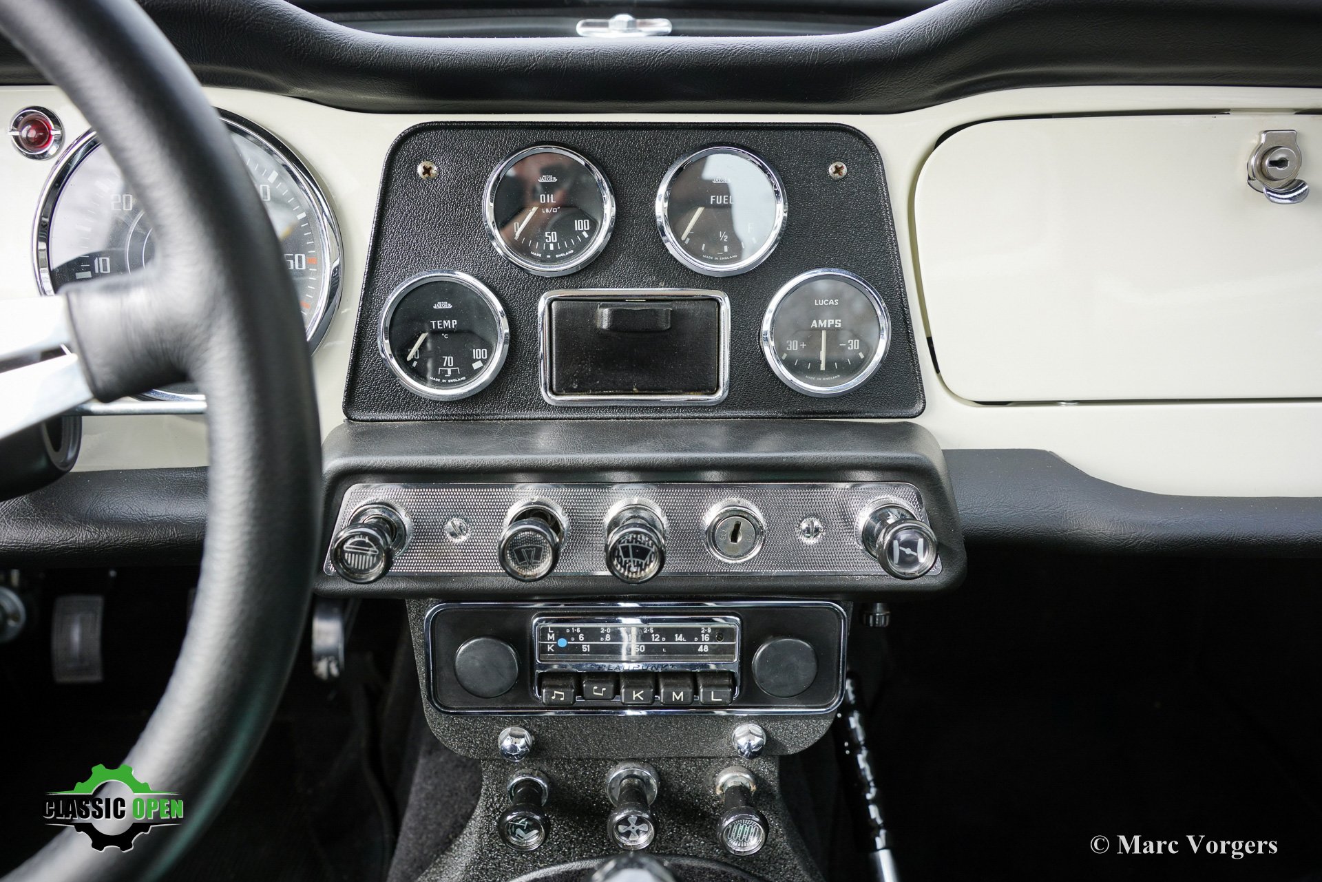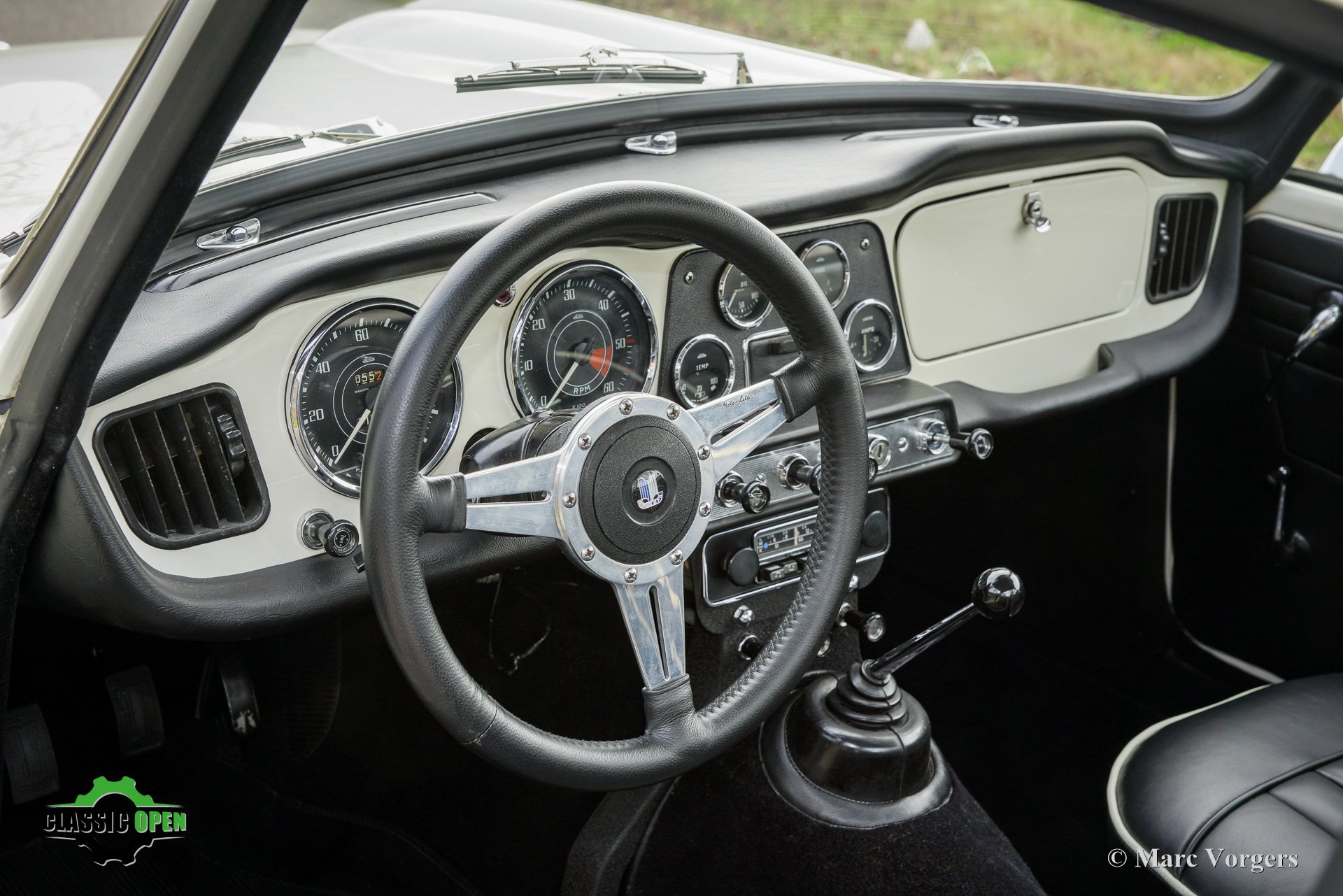 Das originale weiße Armaturenbrett mit seinen schönen klassischen Instrumenten passt perfekt zu diesem frühen TR4.