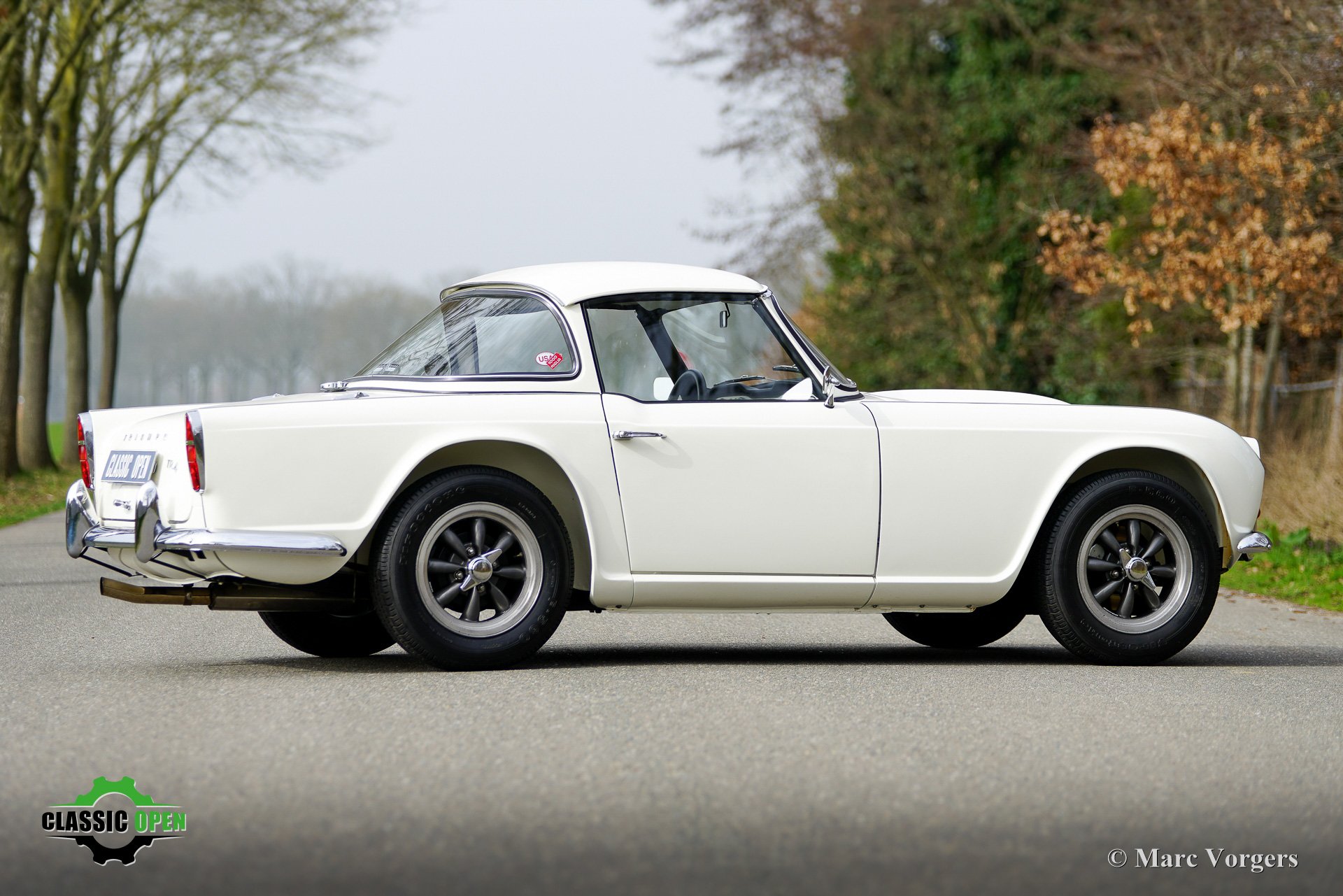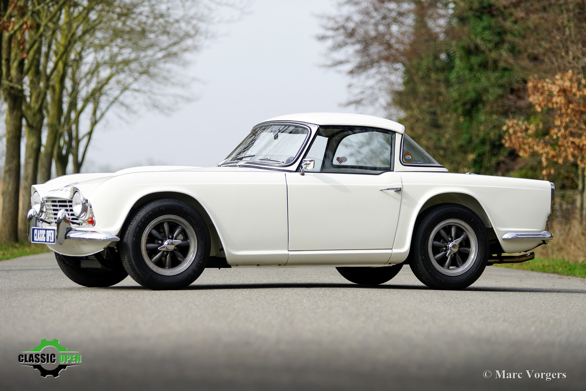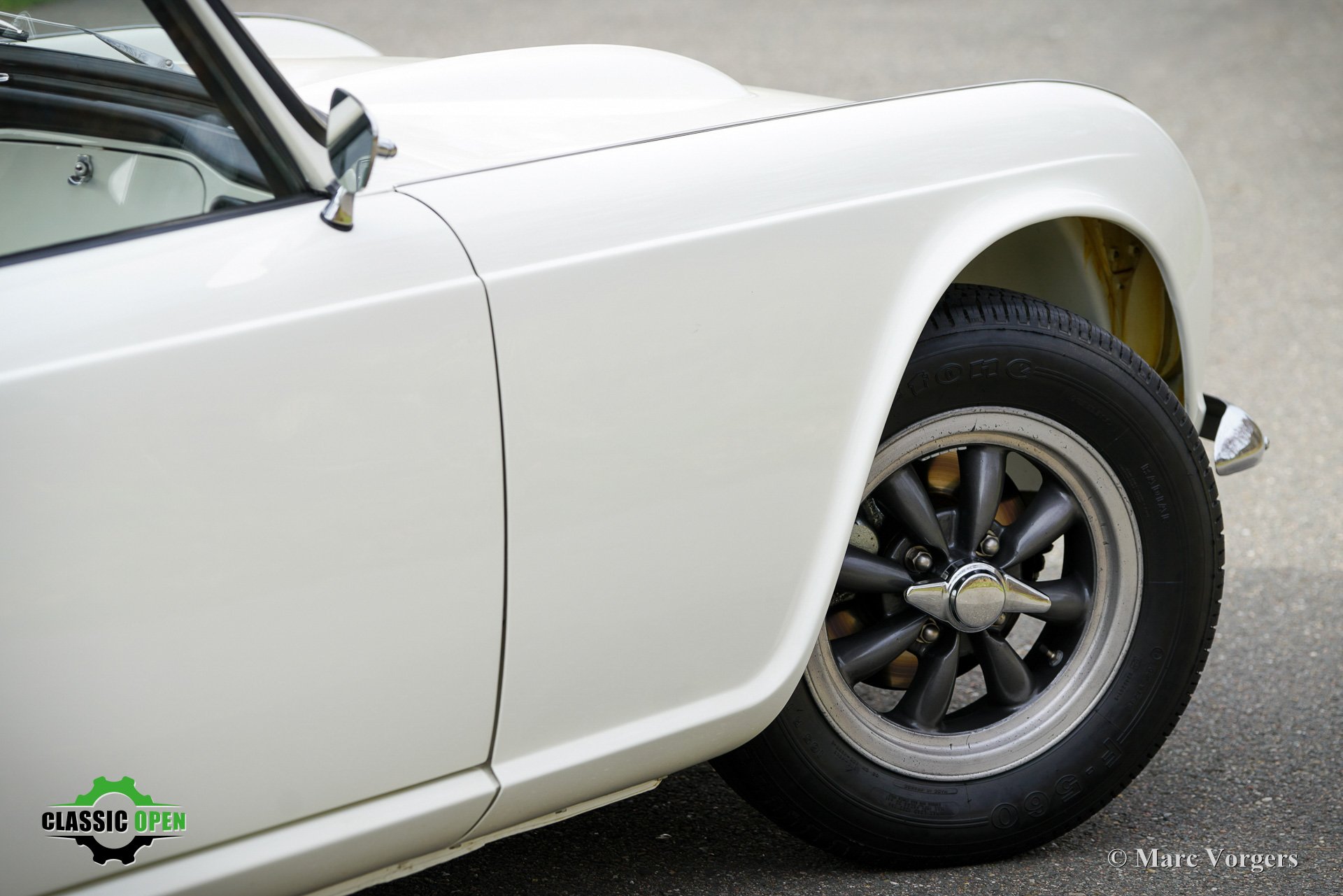 Der TR4 ist mit einem originalen Surrey-Verdeck und wunderschönen American Racing Felgen ausgestattet.