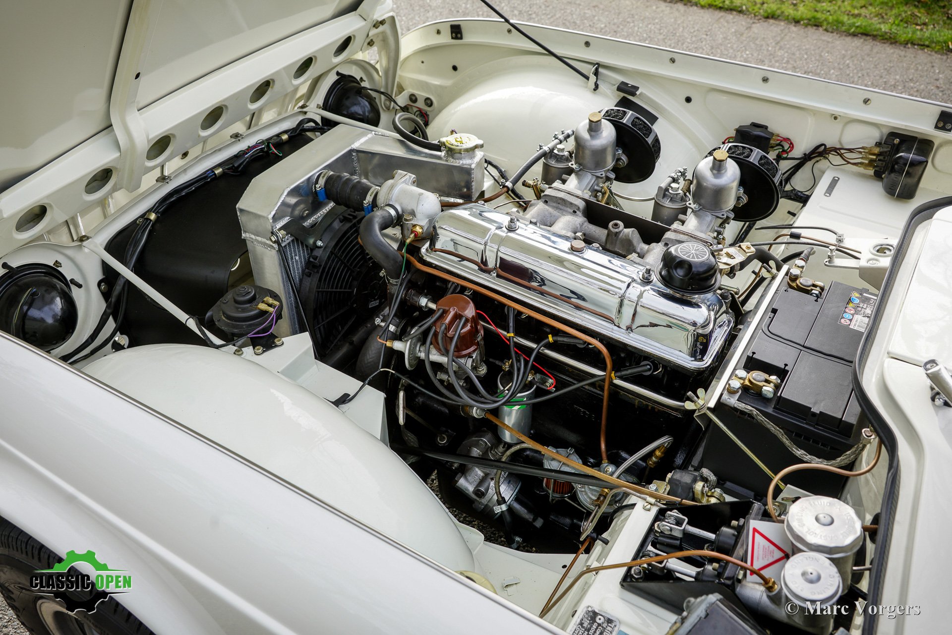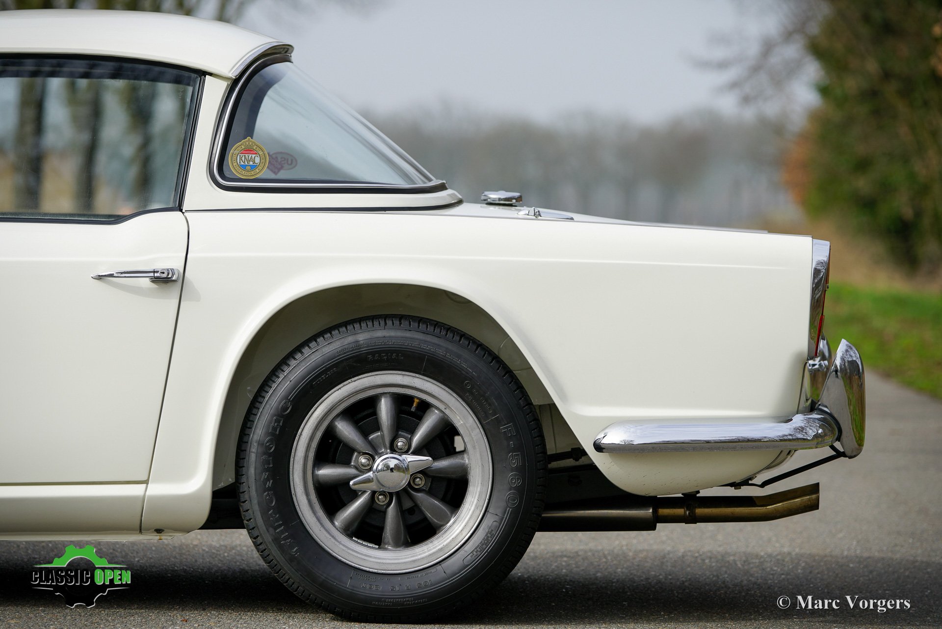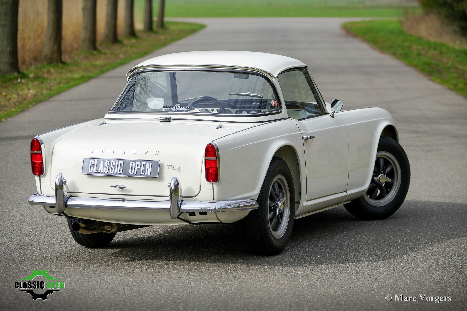 Der TR4 ist mit einem originalen Surrey-Verdeck und wunderschönen American Racing Felgen ausgestattet.